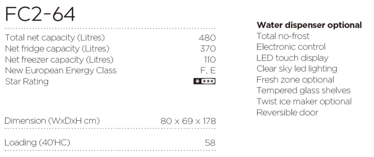 Minus Double Door Refrigerator 415L with Total No Frost – FC2-54