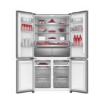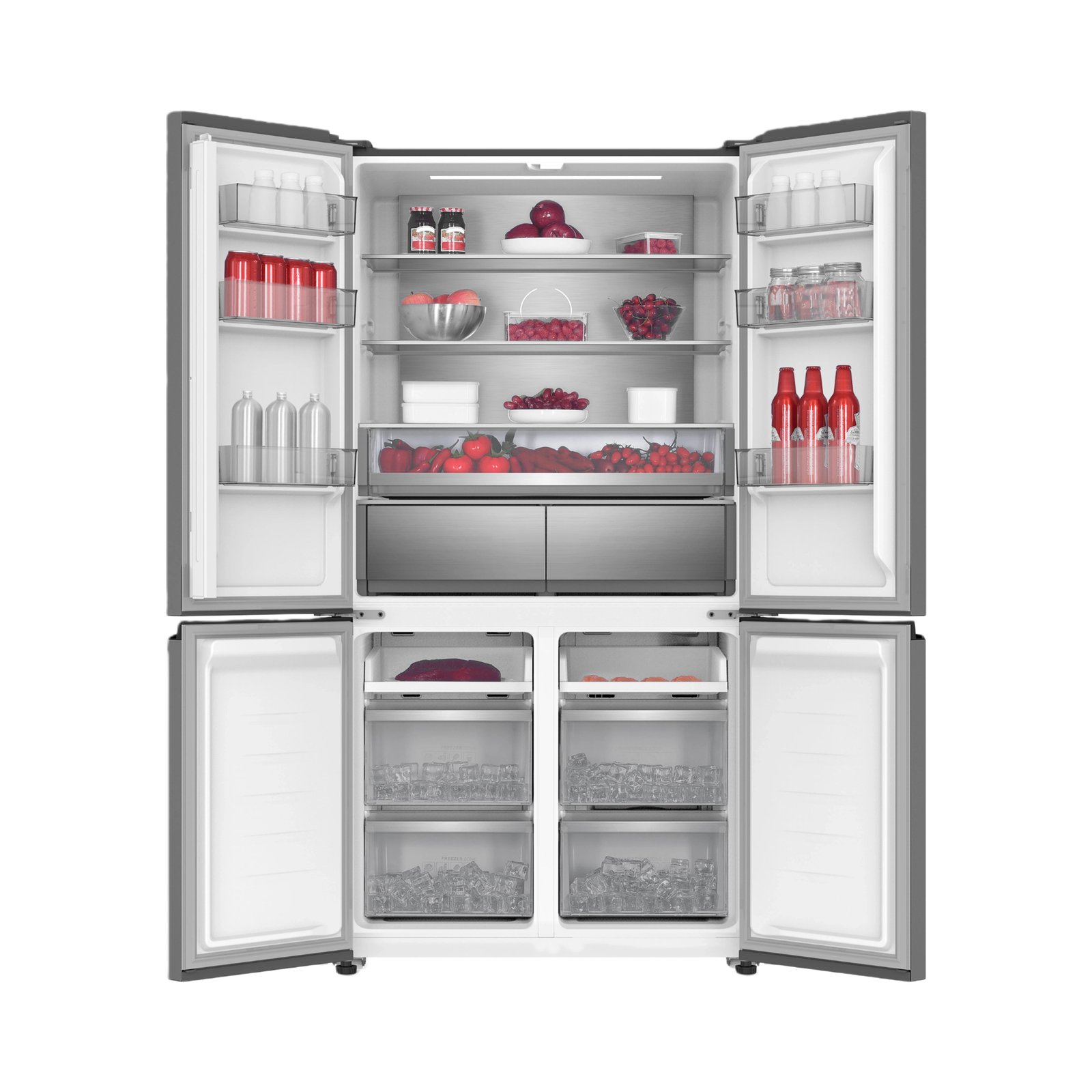 Multi-door fridge freezer, no frost, glass shelf, crystal cripsers with glass cover, 1 flexible zone (crisper or fresh zone), recessed handle, inox