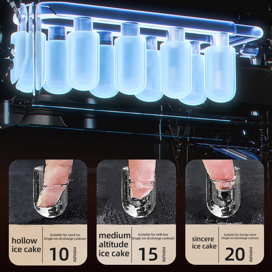 6 Pieces of ice at one time, Quick ice removal with 6-8mins, Water shortage reminder, Adjustable ice size, storage upgrade,