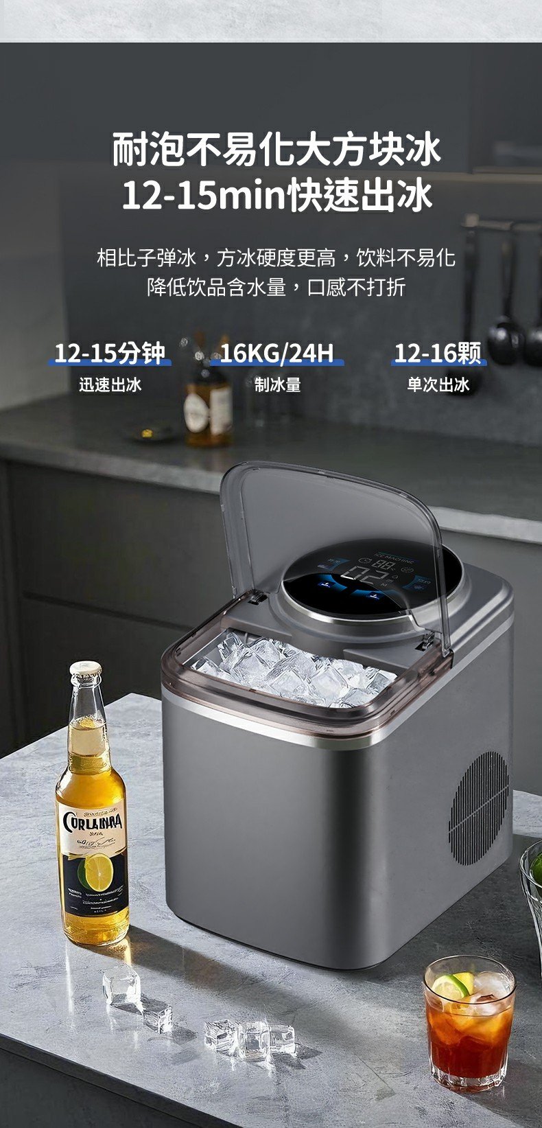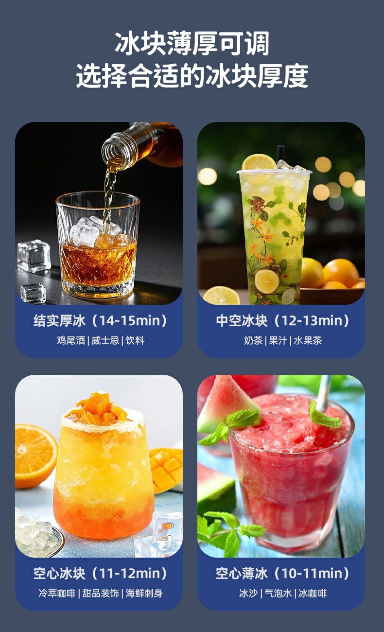 - Fast ice production in 2-15 minutes